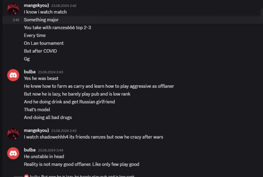 Mangekyou выложил «переписку с BuLba» о RAMZES666 по Dota 2 — подлинность не подтверждена