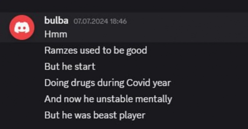 Автор также приводит фрагменты переписки, где BuLba называет RAMZES666 «очень сильным в прошлом», но критикует текущую форму.