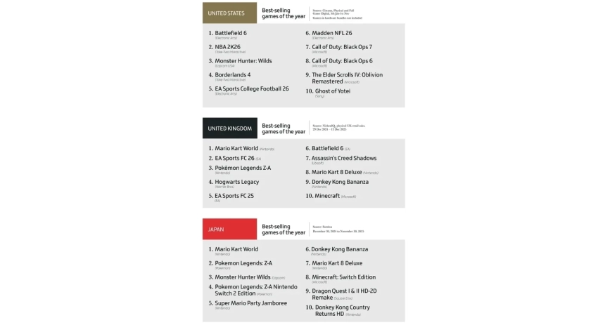 Battlefield 6, GTA 6 и Mario Kart World на вершине — итоги 2025 от аналитиков