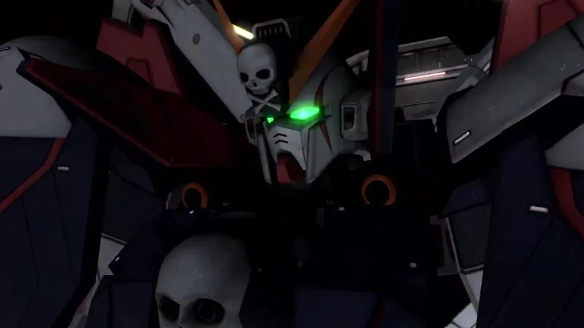 В ролике пилот Crossbone Gundam X-1 FC бьётся с противниками в открытом космосе. Он использует несколько типов оружия и мощные способности, ловко маневрируя между врагами и космическим мусором.