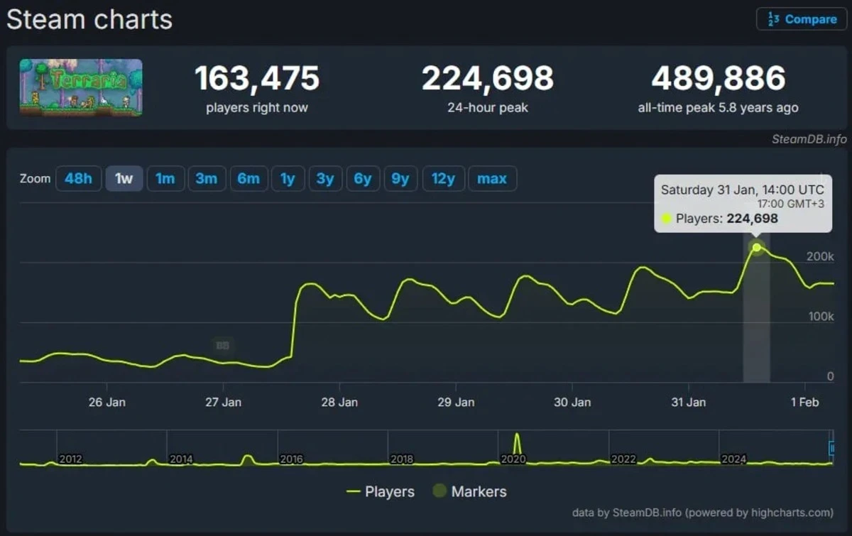 Онлайн в Terraria пробил 200 тысяч человек — такое произошло впервые с 2020 года