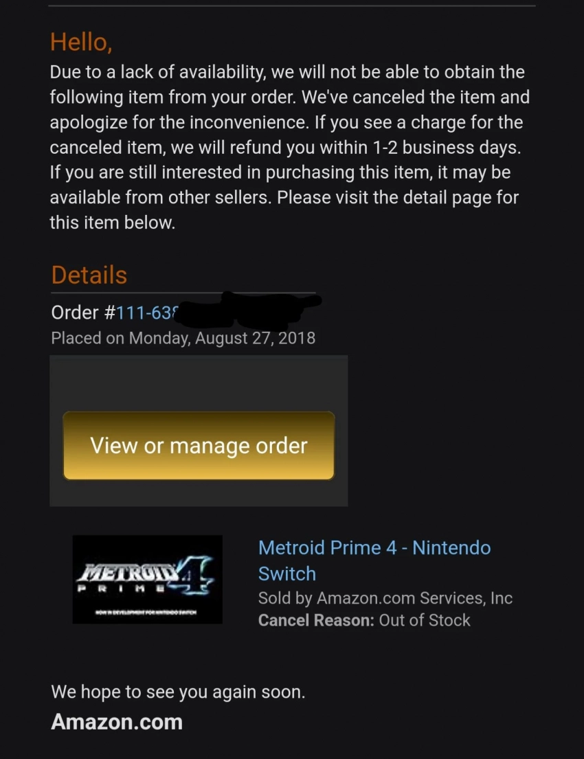 Ещё больше интересных видео на YouTube канале Игромании!Скриншот Metroid Prime 4: BeyondВ прошлом году мы наконец услышали, что Metroid Prime 4: Beyond, анонсированная ещё в 2017 году, в 2025-м наконец выйдет на Nintendo Switch. Но поклонники серии радовались недолго: как сообщают пользователи Reddit и твиттера, Amazon аннулировала предварительные заказы, оформленные вскоре после анонса.