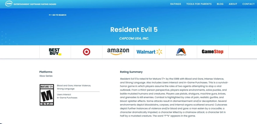 Намёк на ремейк Resident Evil 5 нашли на сайте ESRB