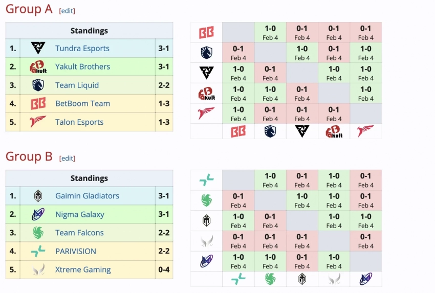 Победители этих пар встретятся с Team Liquid и Team Falcons во втором раунде. В третьем раунде коллективов будут ждать Nigma Galaxy и Yakult Brothers. Дошедшие до полуфинала встретятся с Tundra Esports и Gaimin Gladiators.