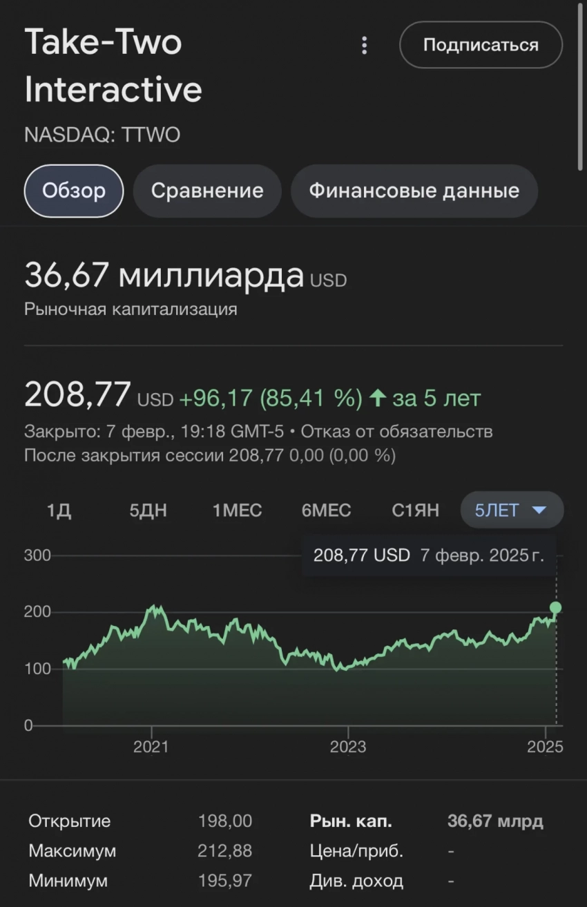 За последние пять лет акции компании превышали 200 долларов лишь в начале 2021 года. Скорее всего, это также было связано с ожиданиями по поводу GTA VI, так как задолго до этого распространялись теории и слухи о выходе игры Rockstar Games именно в том году. Кроме того, это могло быть связано с покупкой Codemasters, сделка по которой была закрыта в январе того же года.