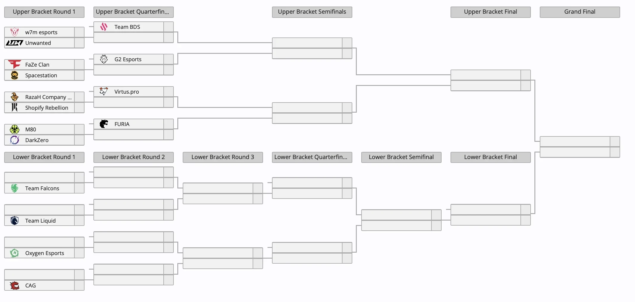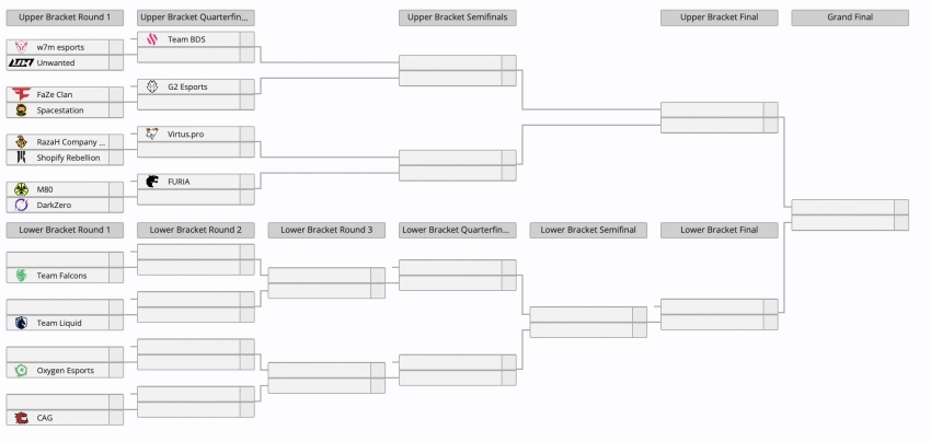 Что касается других пар, то в первом раунде также сыграют w7m esports и Unwanted, FaZe Clan и Spacestation, M80 и DarkZero. Проигравших в нижней сетки будут ждать Team Falcons, Team Liquid, Oxygen Esports и CAG.