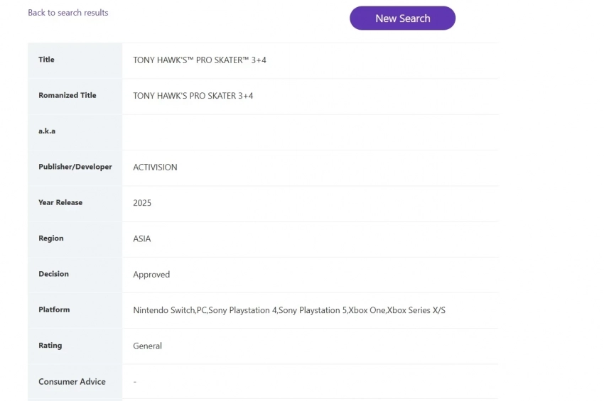 Главные новости » Эксклюзив » Tony Hawkʼs Pro Skater 3+4 выдали возрастной рейтинг в Сингапуре с релизом в 2025 году