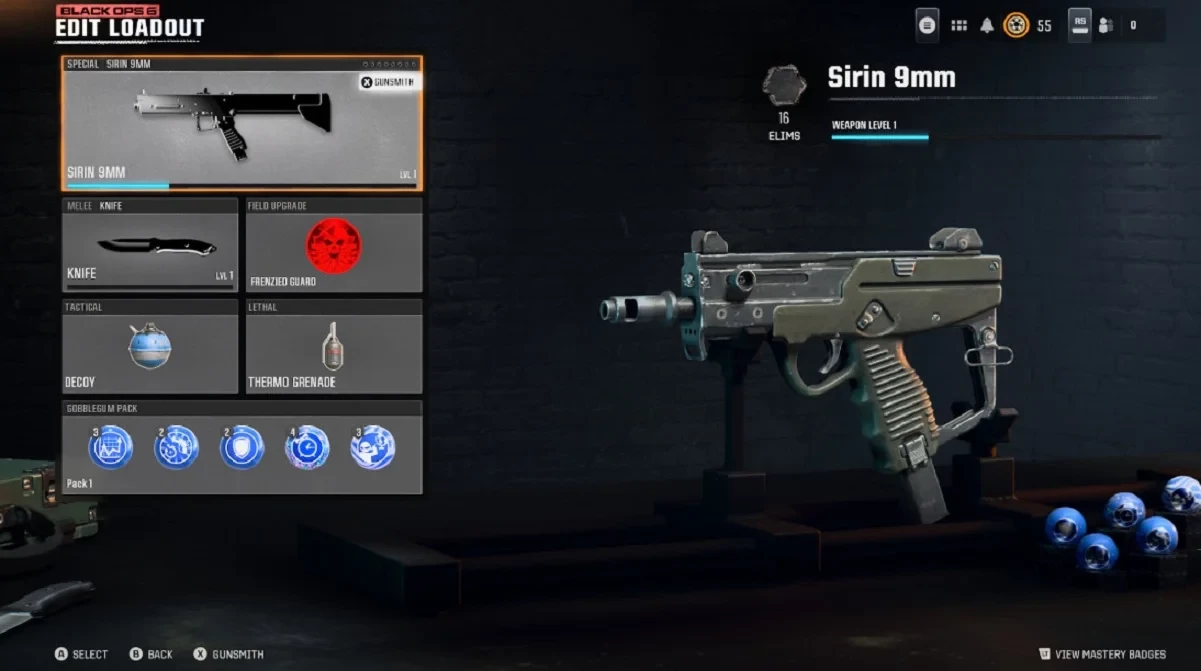 • Нажать кнопку для изменения снаряжения, после чего Sirin 9mm окажется в слоте вторичного оружия.