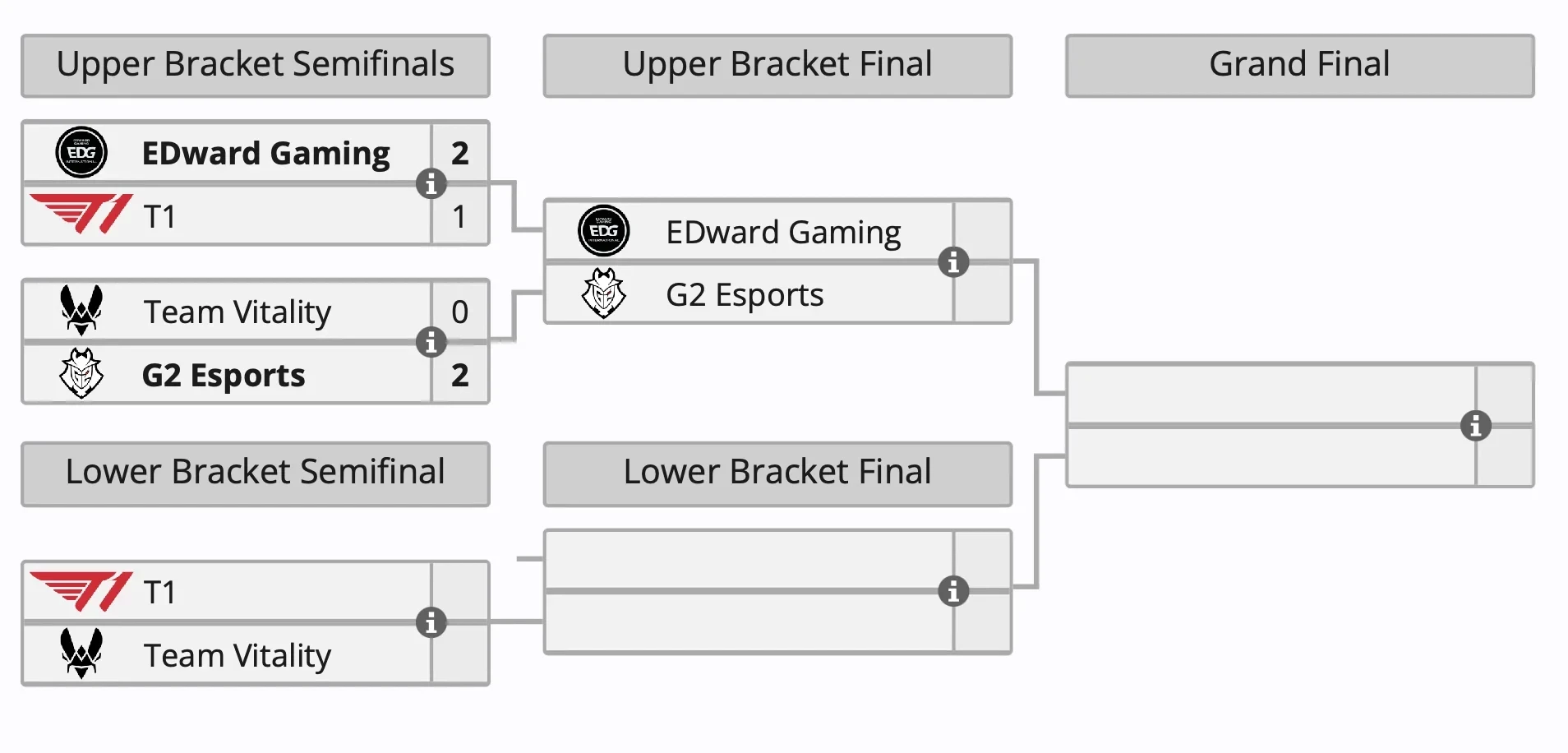 Поединок пройдет 28 февраля. В этот же день встретятся и победители. T1 и Team Vitality сыграют на выбывание, а EDward Gaming и G2 Esports определят первого финалиста.