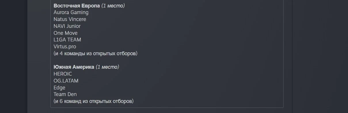 Бороться за оставшиеся восемь мест будет целое море команд, а значит, нас накроет волной интересных игр. «Дорога на The International» начнётся с открытых отборов, которые пройдут с 31 мая по 3 июня (исключение составит Китай, где они продлятся со 2 по 5 июня), а уже за ними последуют региональные. Участвовать смогут только игроки, состоящие на хорошем счету у соревновательного сообщества Доты.