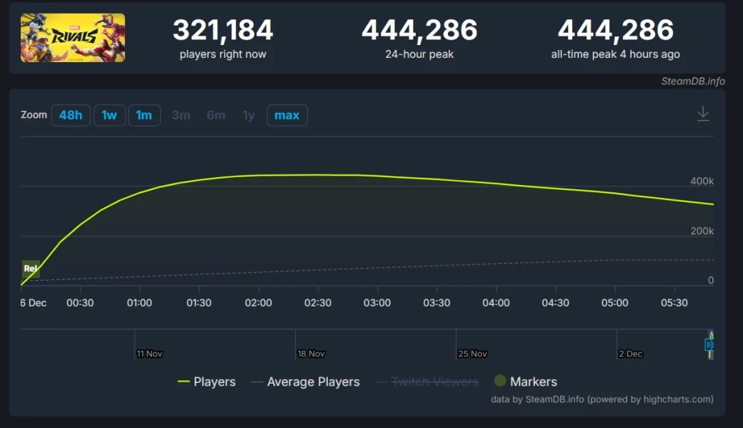 Шутер Marvel Rivals в духе Overwatch привлёк более 444 тыс игроков в Steam на пике онлайна