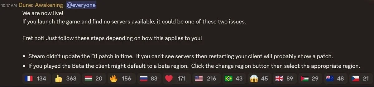 Незадолго до старта Funcom заверила, что полностью готова к лавине игроков и приготовила для них «тысячи серверов, объединённых в сотни миров». И сейчас разработчики настаивают, что с серверами всё в порядке, а тем, кто не может никуда присоединиться, стоит проверить и обновить драйверы, перезапустить игру и попробовать сменить регион.