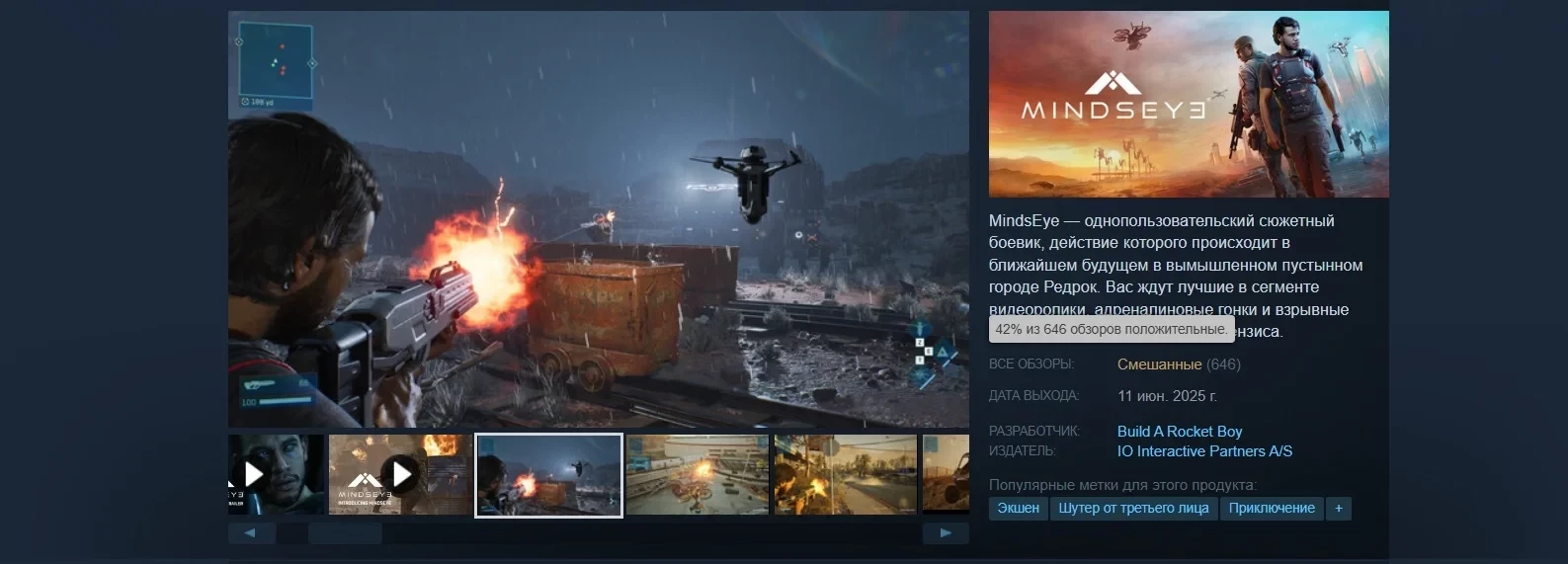 При этом некоторые пользователи называют MindsEye «крепким середнячком» и хвалят «мега-крутые» катсцены и постановку. А сюжет — дело вкуса.