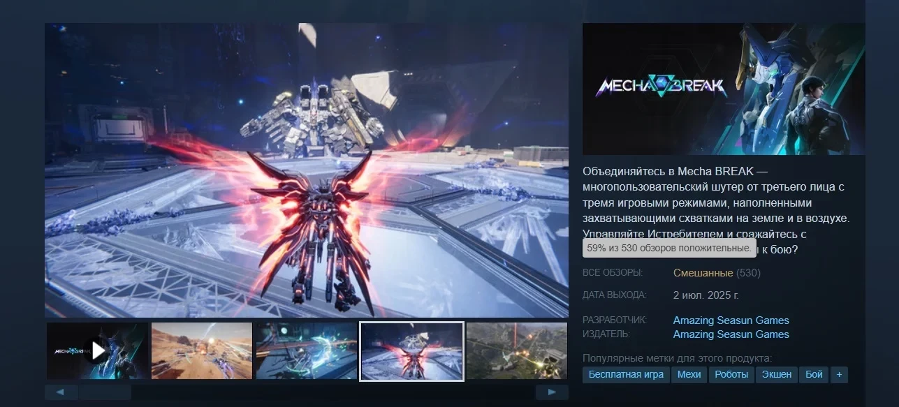 «Скучно и дорого» против «весело и прилично» — что говорят о шутере Mecha Break в Steam