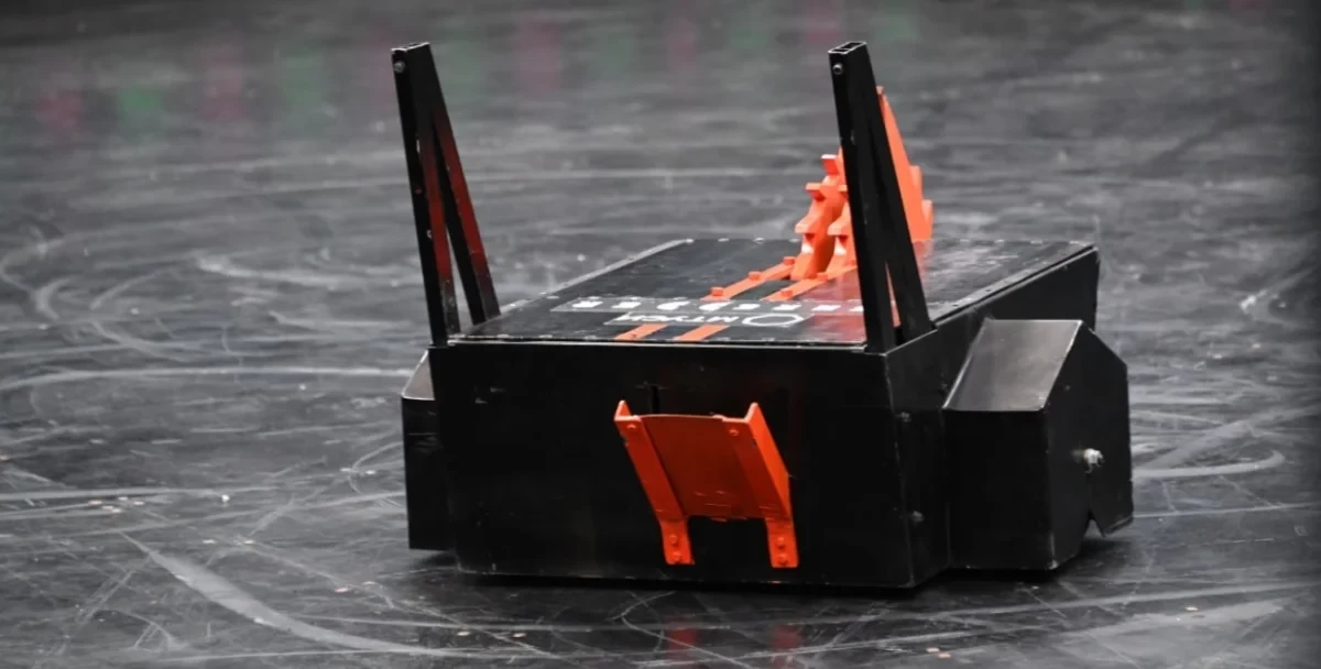 Ударный механизм разгоняется до 8500 оборотов в минуту с помощью электродвигателя и ременной передачи, которая защищает привод от перегрузок за счёт возможности проскальзывания. Такая система позволяет наносить мощные удары и сохранять высокую инерцию вращения при столкновениях. Робот получил усовершенствованную броню и улучшенную манёвренность — это результат серьёзной доработки конструкции.
