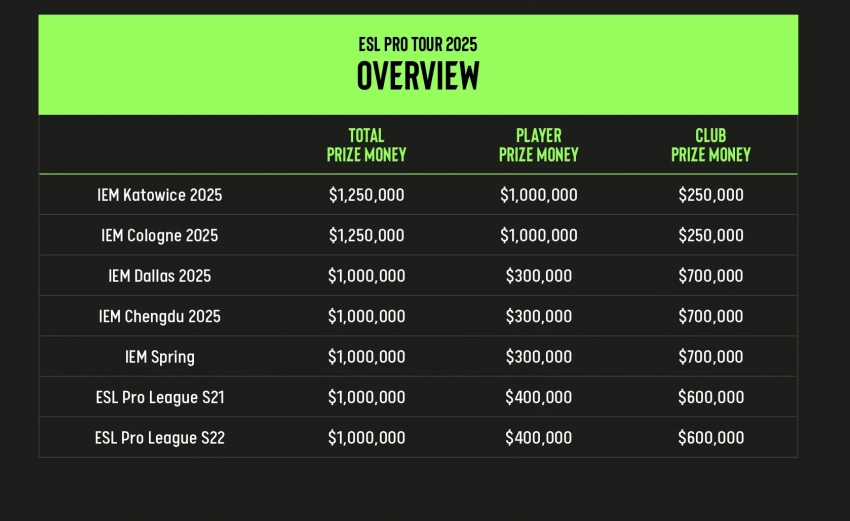 ESL представила расписание турниров на 2025 год и рассказала подробнее о выплатах