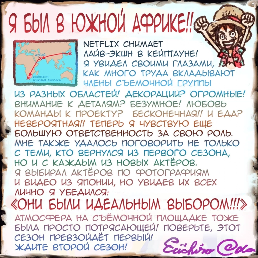 Netflix и Эйитиро Ода поделились кадрами со съемок второго сезона сериала One Piece