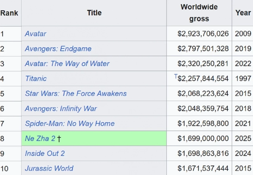 «Нэчжа 2» обошёл «Головоломку 2» и стал самым кассовым мультфильмом в истории