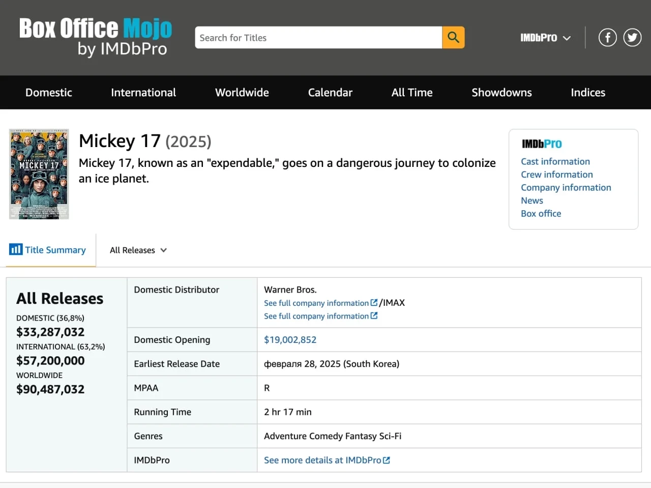Проваливающийся в прокате «Микки 17» может выйти «в цифре» уже 25 марта