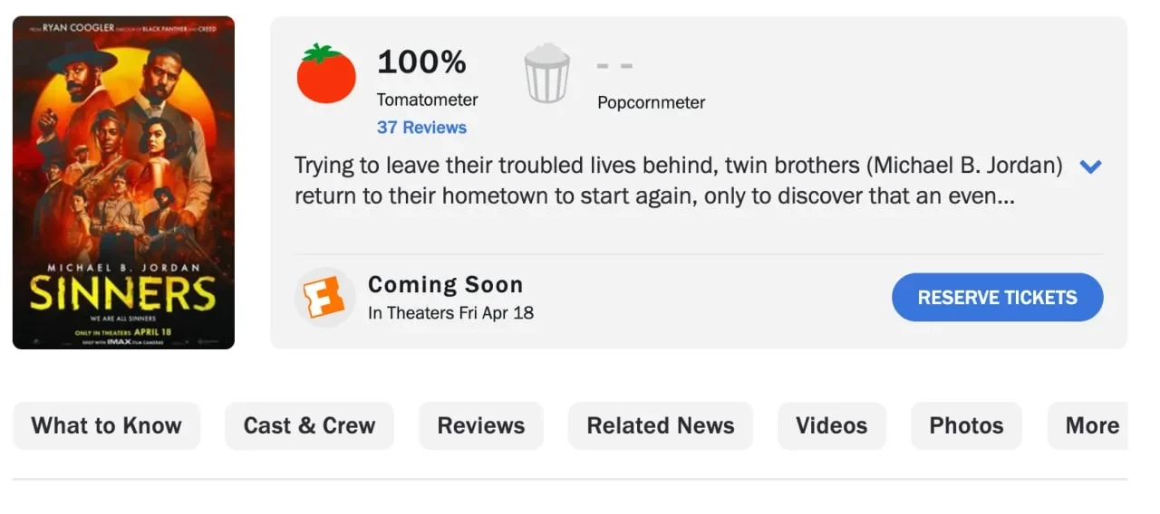 Это уникальный опыт, который попросту появляется редко. Возможно, что это преувеличение, но я уверен, что мы будем обсуждать «Грешников» ещё долго — SlashFilm