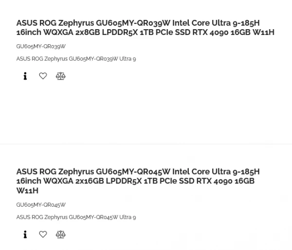 ASUS также готовит обновлённые модели игровых ноутбуков ROG Zephyrus M16, которые предложат процессоры Core Ultra 9 185H и дискретные видеокарты GeForce RTX 4090 с 16 Гбайт памяти GDDR6. Указанные лэптопы будут доступны в конфигурациях с 16 (2 × 8) или 32 (2 × 16) Гбайт оперативной памяти LPDDR5X, а также предложат 16-дюймовые экраны с поддержкой разрешения 2560 × 1600 пикселей.