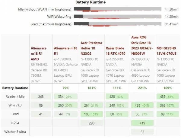 Radeon RX 7900M оказалась медленнее мобильной GeForce RTX 4080, а ноутбук с ней показал отвратительную автономность