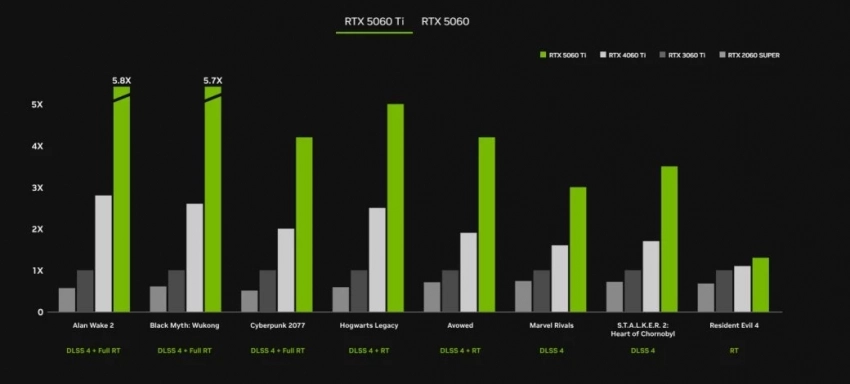 Nvidia показала GeForce RTX 5060 Ti и 5060 и сравнила их с прошлым поколением видеокарт