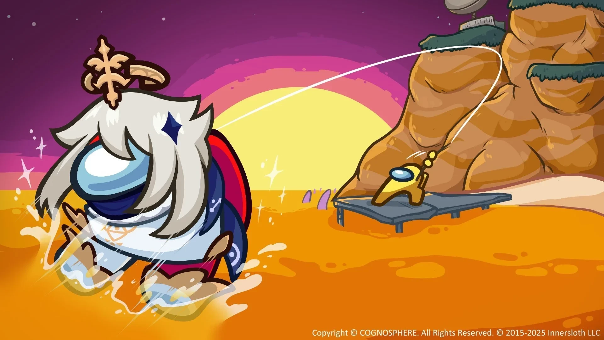 Ранее разработчики Among Us намекнули на кроссовер с Genshin Impact. Коллаборация действительно произошла — с сегодняшнего дня за вход в Among Us до 10 октября бесплатно выдают облик Паймон. Награда приурочена к релизу крупного обновления в Genshin Impact с новым регионом.