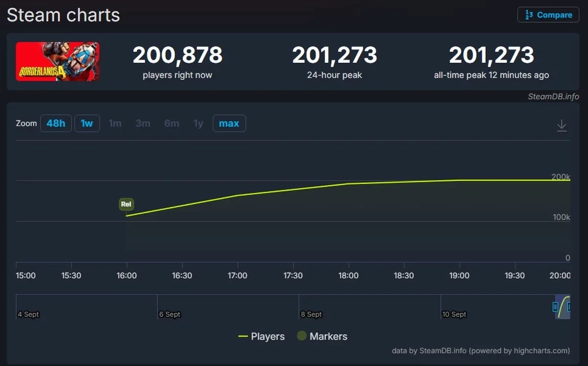 Borderlands 4 побила рекорды прочих частей по пиковому онлайну в Steam