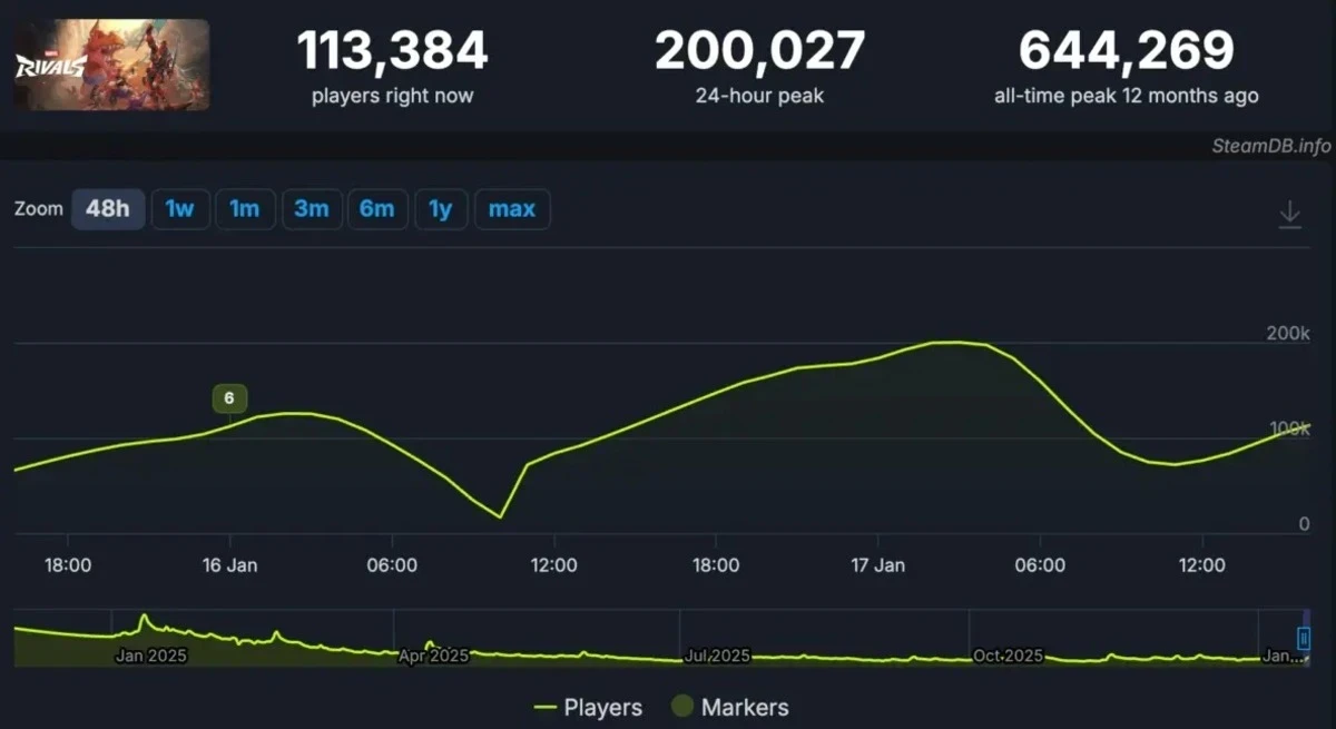 В ночь на 17 января в версии для платформы Valve одновременно находилось более 200 тысяч игроков — пиковое значение составило 200 027 человек. И это только Steam: Marvel Rivals также доступна на консолях PlayStation и Xbox, где у проекта тоже внушительная аудитория.