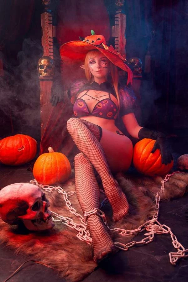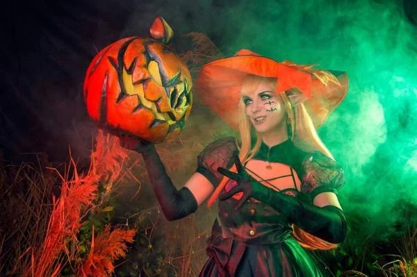 Марин из аниме My Dress-Up Darling стала в последнее время очень популярна у косплееров. Причина довольно проста — яркая девушка, косплей который не очень сложно сделать. Но вот над этим хэллоуниским образом Алена Сысуева очень постаралась.