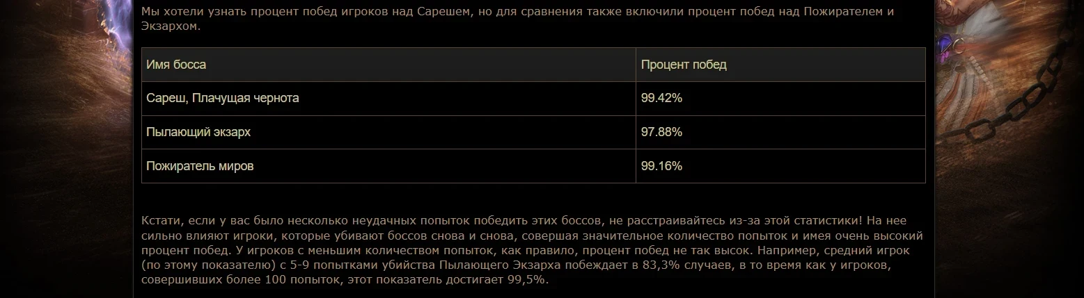 Процент побед над боссами