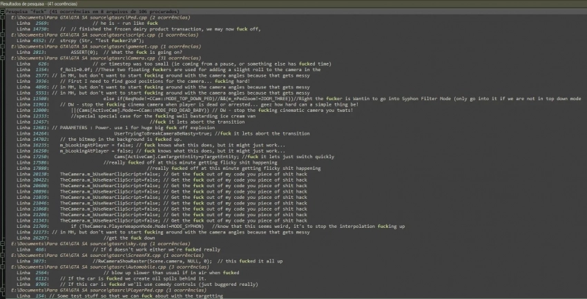 Кроме того, в файлах можно найти комментарии самих разработчиков GTA: San Andreas относительно работы отдельных систем, вышеупомянутую механику разлива бензина — и они в основном весьма нецензурные. Так что о причинах того, почему всё это решили вырезать, долго догадываться не приходится. Но теперь фанаты наверняка попытаются вставить всё это обратно.