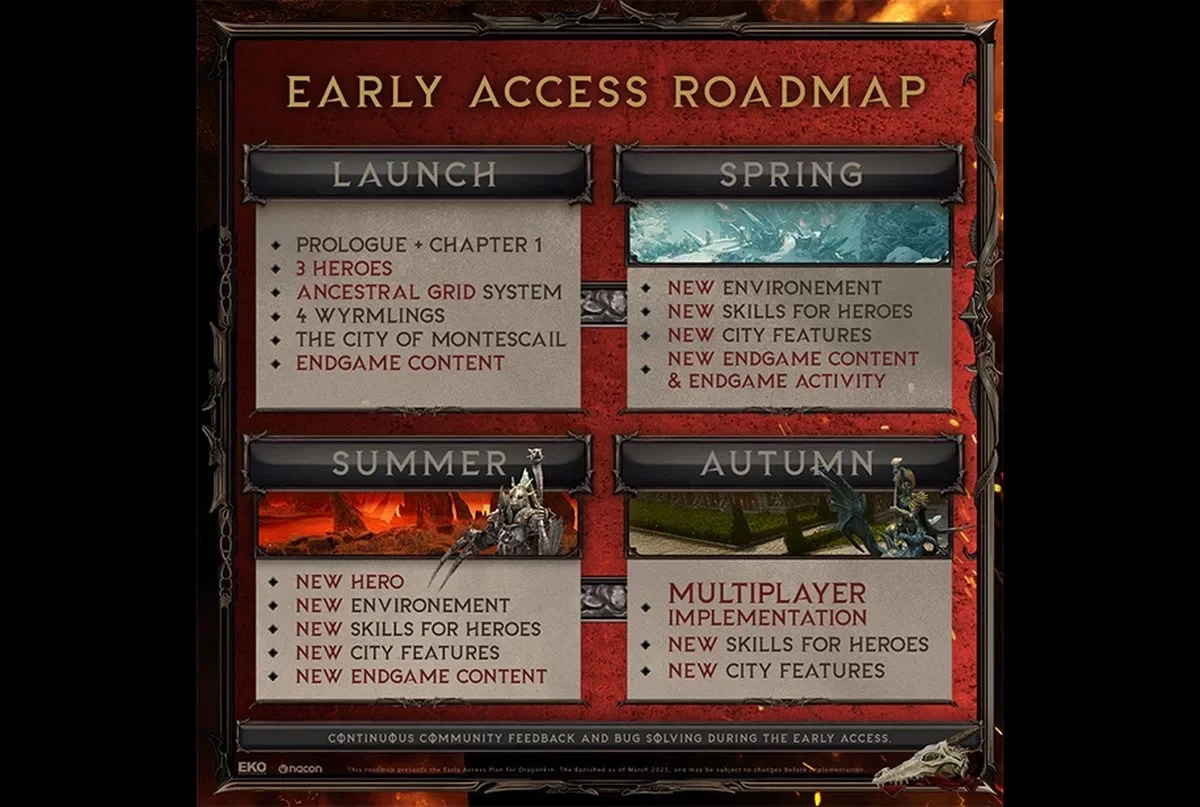 Ещё больше интересных видео на YouTube канале Игромании!Скриншот Dragonkin: The BanishedСтудия Eko Software, известная по боевику Warhammer: Chaosbane, с 6 марта выпускает в ранний доступ Steam приключенческий ролевой слэшер Dragonkin: The Banished. Разработчики уже опубликовали свои планы развития игры в раннем доступе, и они охватывают период до зимы 2025 года.