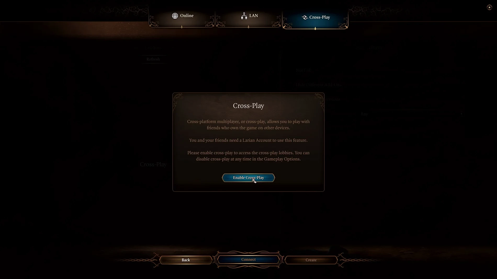 Полные кроссплей и кросс-прогресс между всеми актуальными платформами. Игроки смогут приглашать друзей в лобби напрямую и находить доступные многопользовательские лобби через Larian Network.