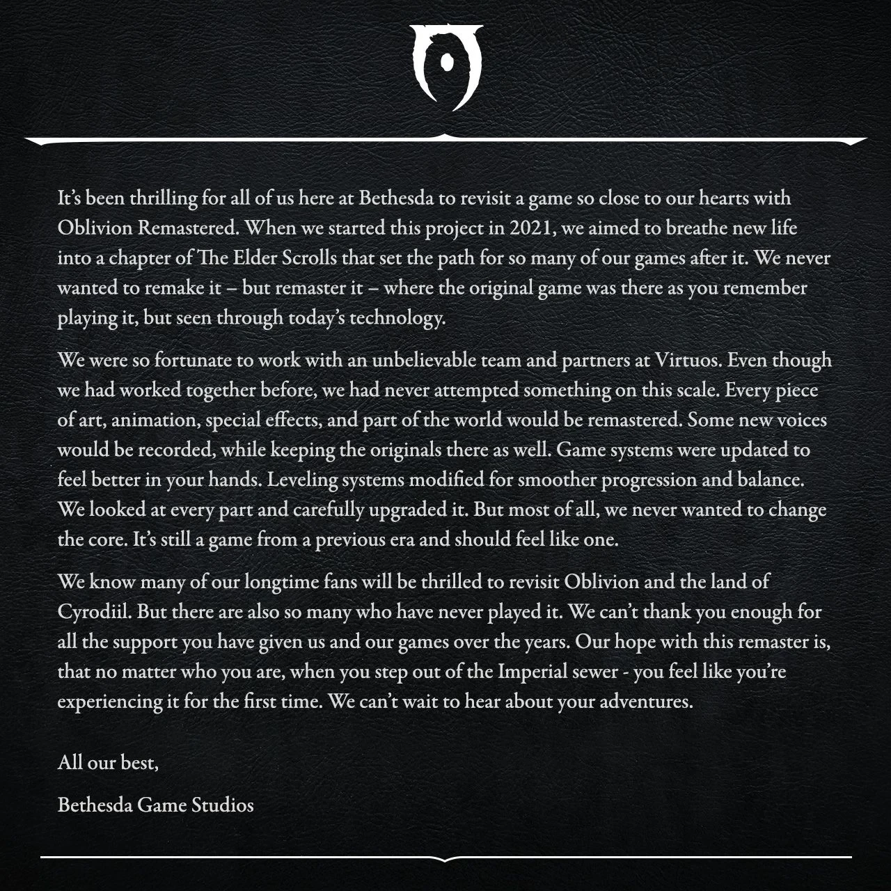 Bethesda назвала ремейк The Elder Scrolls 4: Oblivion ремастером из почтения