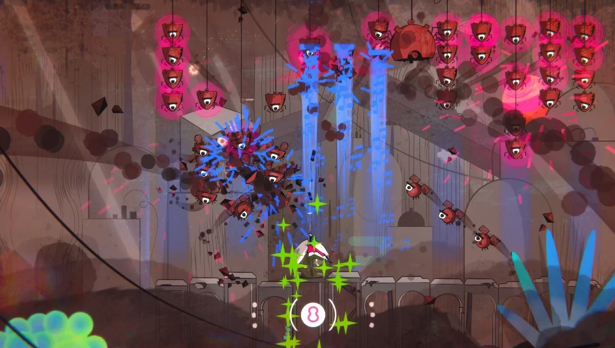 Особое внимание в ролике уделяется миру игры. В нём троица панк-музыкантов с уникальными способностями отправляется в крестовый поход против безумной королевы. Она построила гигантскую буровую установку, из-за которой планета начала вибрировать в одном ритме с монструозной машиной. Да, ритм играет важную роль и в самом геймплее.
