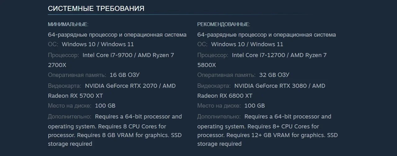 - Процессор — Intel Core i7-12700 или AMD Ryzen 7 5800X