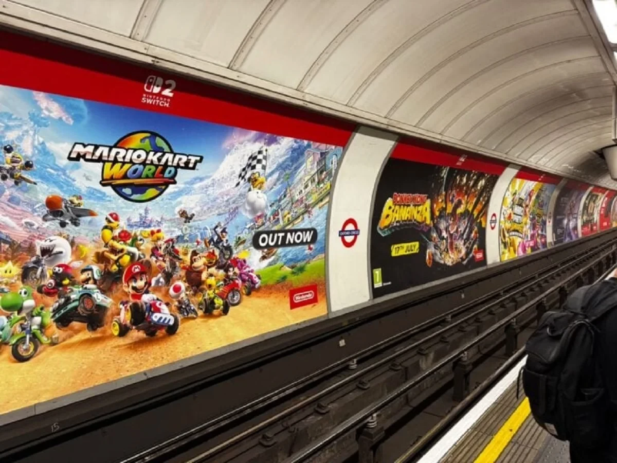 4 фотоНа другом плакате можно увидеть Mario Kart World с аналогичной пометкой «Уже доступно» (OUT NOW).