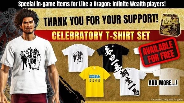 В честь достижения 1 млн копий игрокам Like a Dragon: Infinite Wealth подарят набор праздничных футболок (источник изображения: Sega)
